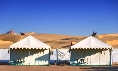 Discover indulgent luxury in our Luxury Suite Tented Accommodation. This 14*28 feet boutique suite boasts a separate living area and luxurious wooden bedding. Immerse yourself in the landscape bathroom’s opulent bathtub, surrounded by panoramic desert views. Enjoy leisure moments in the seating area with a minibar. Wake up to freshly coffee, embracing the serenity of the desert. Book now for an unforgettable escape into desert opulence.